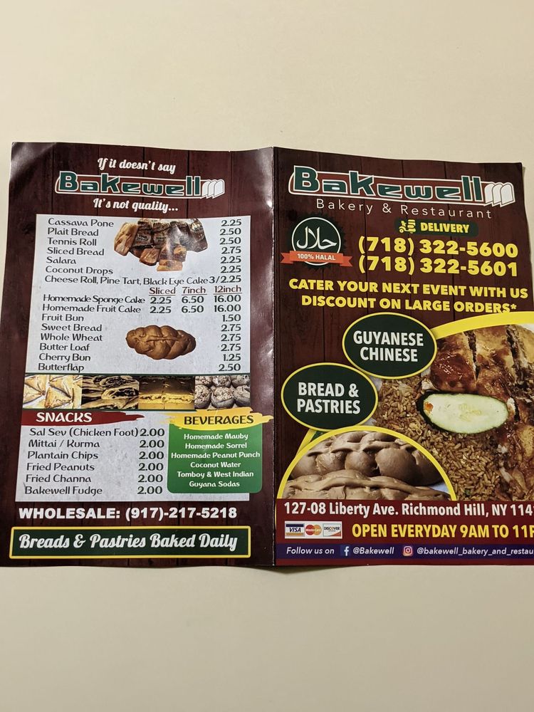 Introducing the menu at Bakewell Bakery & Restaurant, a local Caribbean gem on Liberty Ave. Offering a variety of delicious options like Guyanese fried rice, spicy fish sandwiches, homemade pinetarts, and savory chicken or beef patties. Customers rave about the flavorful and fresh food, with favorites like the fried rice with sauce and jerk chicken chow mein. The menu includes many vegetarian options, catering services, and quick takeout or delivery options. Bakewell Bakery & Restaurant has a loyal following who praise the great customer service and friendly staff. Don't miss out on the best fried rice in town and experience the authentic flavors of Caribbean cuisine at Bakewell Bakery & Restaurant.